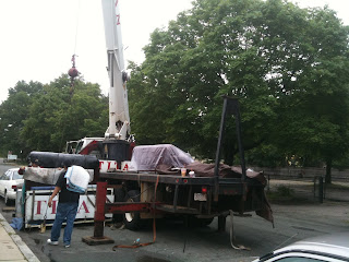 The drove it to my place, and started hoisting it up: