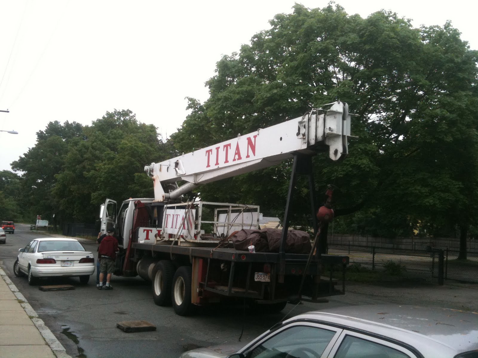 The drove it to my place, and started hoisting it up: